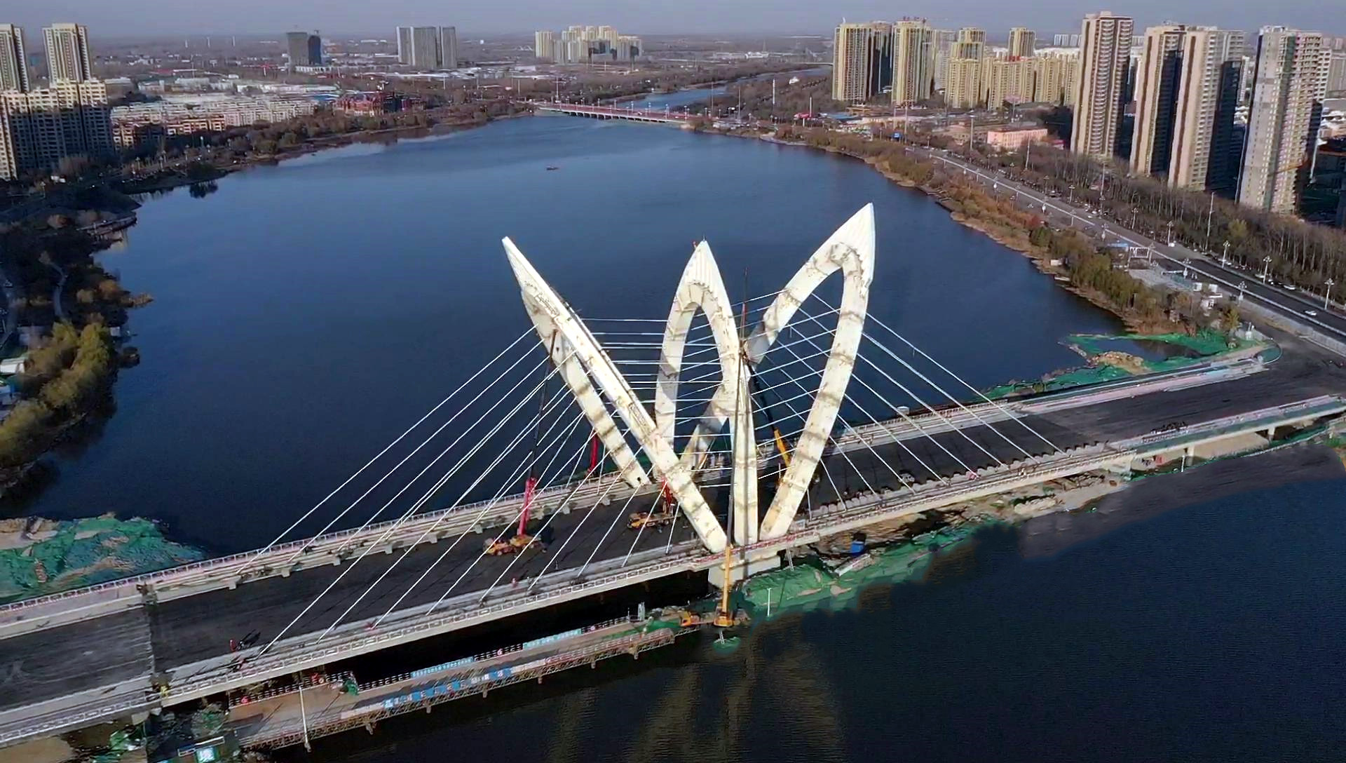 在光岳路徒骇河桥南侧,一座莲花造型的大桥“浮”在河面,聊城市兴华路跨徒骇河大桥施工基本完成。据施工单位中建八局兴华路跨徒骇河大桥项目负责人任志成介绍,目前正在进行桥面附属结构建设,大桥整体具备通车条件。